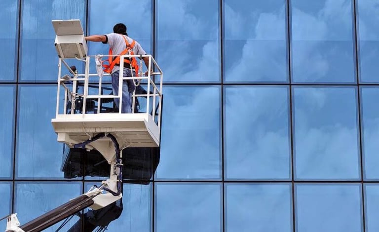 نستعمل تقنيات حديثة لتنظيف الواجهات الزجاجية بشكل فعال.